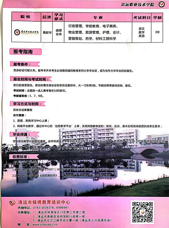 共青團清遠(yuǎn)市委員會2017年圓夢計劃正式啟動!【北京大學(xué)圓夢計劃,圓你大學(xué)夢】成人本科:北京大學(xué)(網(wǎng)絡(luò)教育)符合條件者3年共交學(xué)費2000元,?疲呵暹h(yuǎn)職業(yè)技術(shù)學(xué)院(成人函授),符合條件者3年共交學(xué)費1000元,就能完成學(xué)業(yè),輕松拿證!另外,企業(yè)人力資源管理師職業(yè)資格考證、叉車上崗證考證等現(xiàn)火熱接受報名中,歡迎有志提升自己的朋友咨詢報名。咨詢熱線:成老師0763-3630112 15816286696微信同步 報名地址:清遠(yuǎn)市北江二路勞動大廈一樓