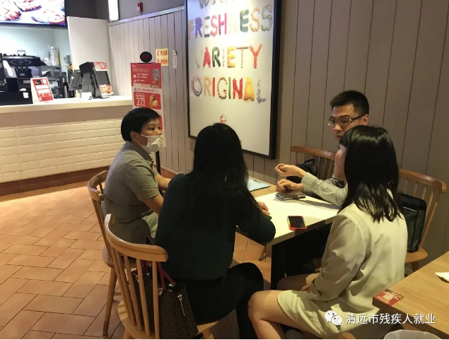 為了解殘疾人就業(yè)情況,解決廣大殘疾求職者和企業(yè)用工需求。3月16日上午,市殘聯(lián)、合作機構清遠市錦繡前程人力資源有限公司的工作人員一行來到百勝餐飲(廣東)有限公司清遠先鋒餐廳進行實地走訪。詳細了解了企業(yè)的殘疾人崗位情況、經(jīng)營現(xiàn)狀以及發(fā)展形勢,并向企業(yè)宣傳相關的殘疾人就業(yè)扶持政策、殘疾人就業(yè)保障金申報年審等。