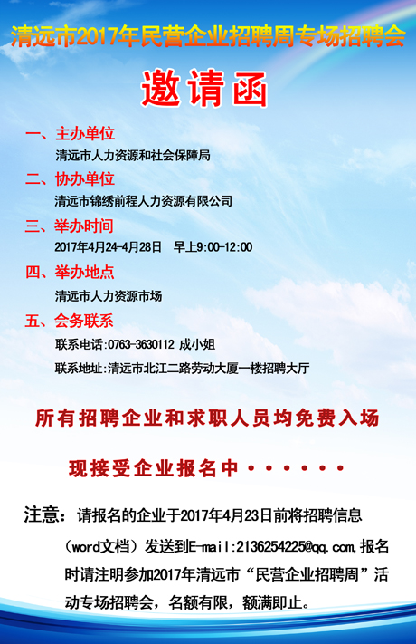 清遠(yuǎn)市2017年“民營企業(yè)招聘周”活動(dòng)專場(chǎng)招聘會(huì)