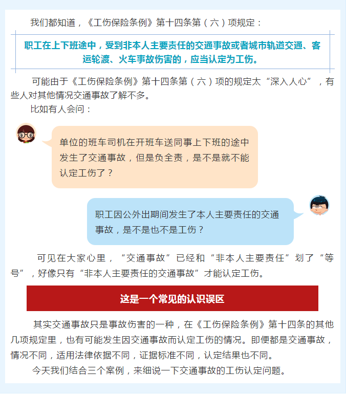 可見,職工交通事故情形不同,適用法律依據(jù)就可能不同,認(rèn)定結(jié)果也不盡相同,千萬不要混淆操作。