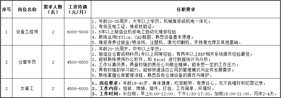 1、上班時(shí)間:按5天8小時(shí)制,按國家規(guī)定發(fā)放加班費(fèi);